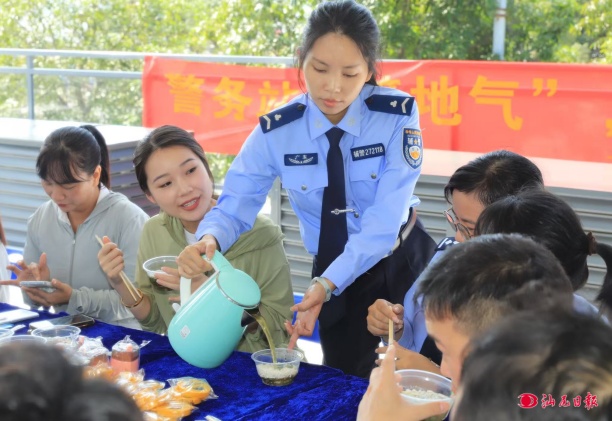 警民同乐话家常,点滴互动助力文明城市创建。