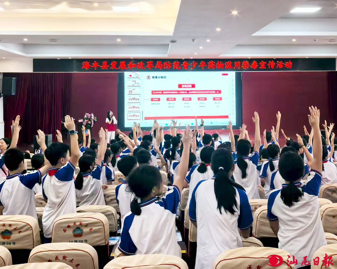 汕尾日报讯 (记者 刘佳伦 通讯员 冯琬舒 文/图)为深入贯彻落实国家禁毒工作方针,进一步提高青少年识毒、防毒、拒毒意识,为青少年的健康成长保驾护航,9月12日,海丰县发展和改革局走进城东镇中心小学,开展了一场主题为“防范青少年药物滥用”的禁毒宣传活动。