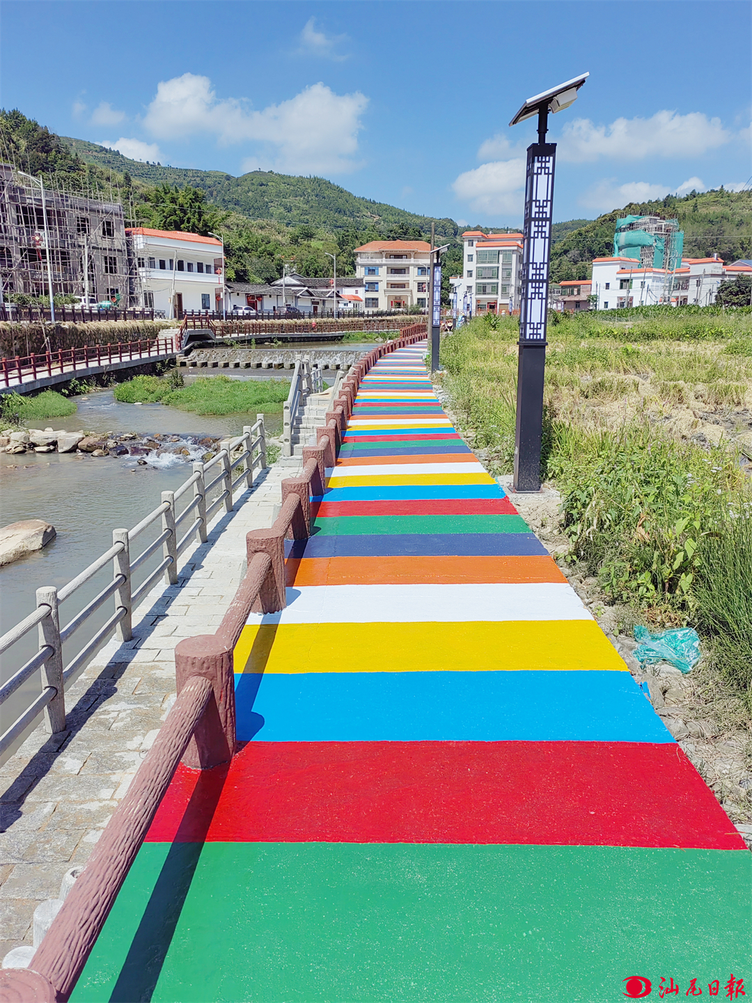 万东村溪边的“五彩”人行道五彩斑斓。