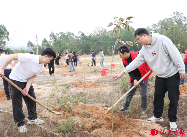 新田镇党员干部植树添绿,积极推进绿美生态建设。