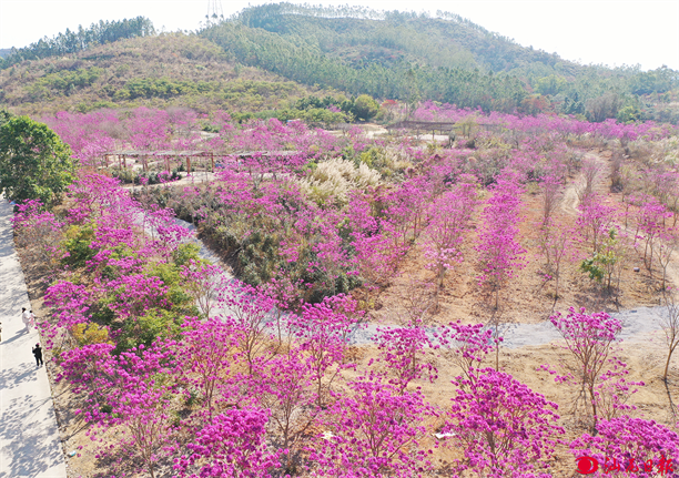 以“绿美紫花+生态增值”添绿加彩。该镇围绕打造“绿美紫花镇”,发动社会捐资捐树近300万元,种植紫花风铃木等苗木5万余株,打造绿美小公园17个,新增绿化带15公里、绿化面积超3万平方米。大力推动生态修复,引进“奇楠”沉香种植基地项目,种植沉香30万株,实现退桉还林千余亩。积极发展碳汇经济,推动两批10村次参与碳汇交易,碳减排8.4万吨,“卖空气”增收512万元,真正将“绿水青山”转化为“金山银山”。