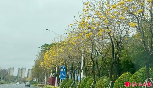 图为市区香江大道的黄花风铃木。