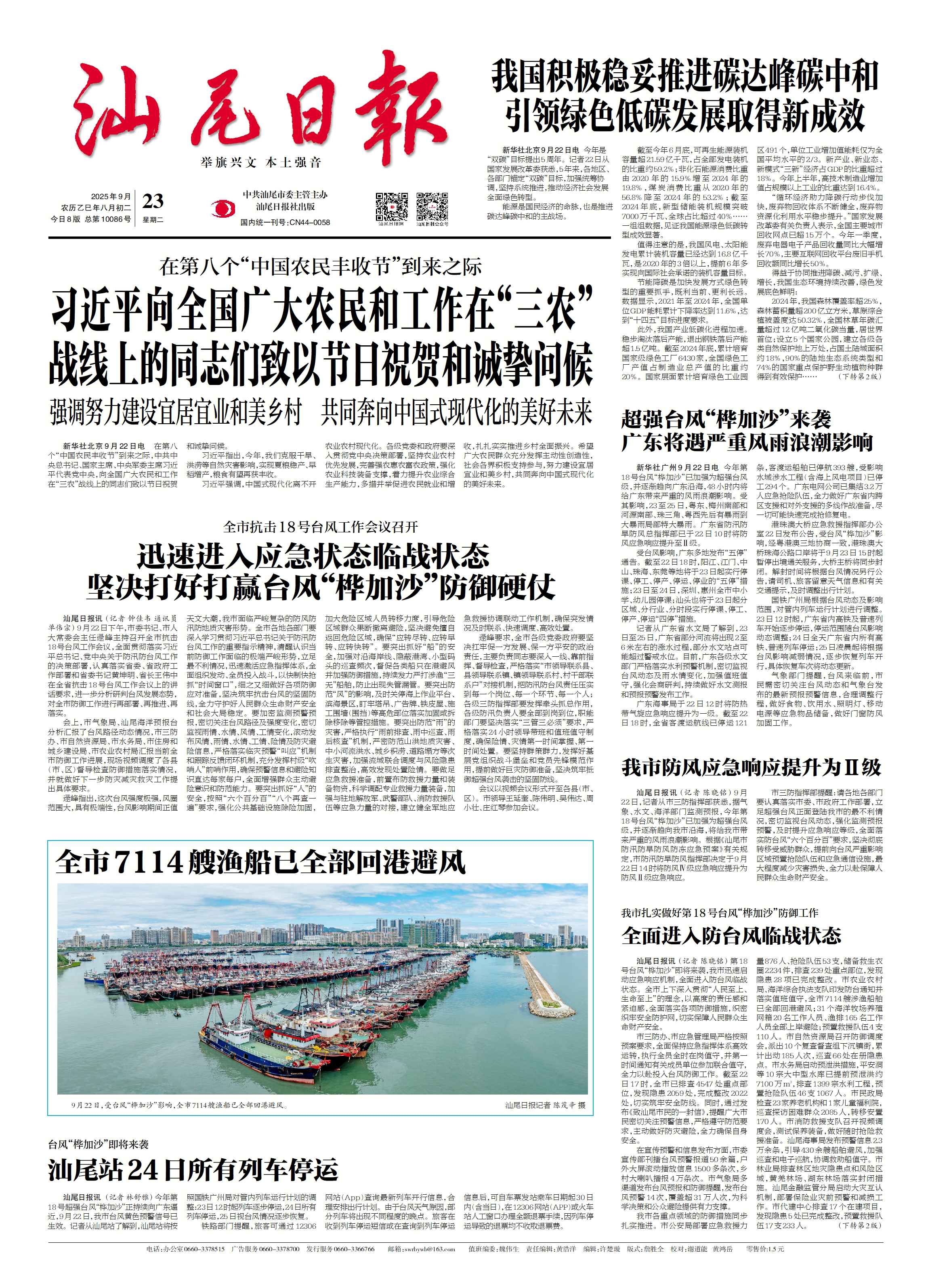 在第八个“中国农民丰收节”到来之际 习近平向全国广大农民和工作在“三农”战线上的同志们致以节日祝贺和诚挚问候 强调努力建设宜居宜业和美乡村 共同奔向中国式现代化的美好未来