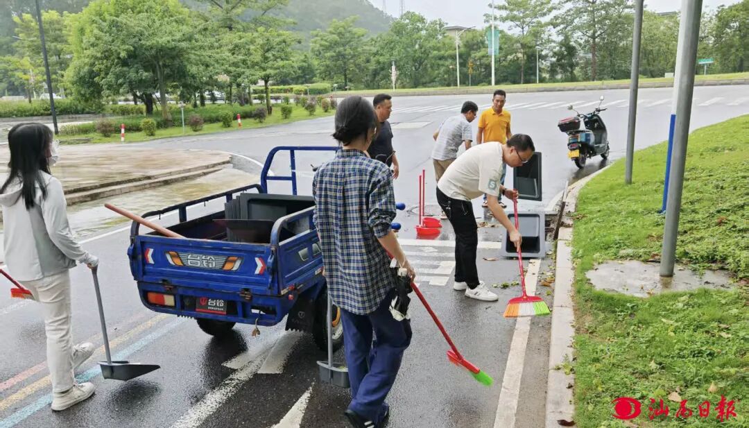 在清湖社区的排水沟旁,几名党员正挥着铁锹奋力清理淤泥,裤腿上沾满了混着汗水的泥浆。“这处积水堆了好几天,昨天有居民说孩子在边上玩被蚊子叮了好几个包。”社区的党员抹了把额头上的汗喊道,“加把劲!争取今天把这一片的积水点全清干净!”